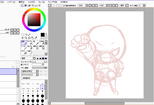 絵にアングルをつけるときとか複雑なポーズとかを描くときはこんな風にきったない雑なアタリをざかざかと描いてます。色々おかしい部分とかあるけど気にしないで下さい。